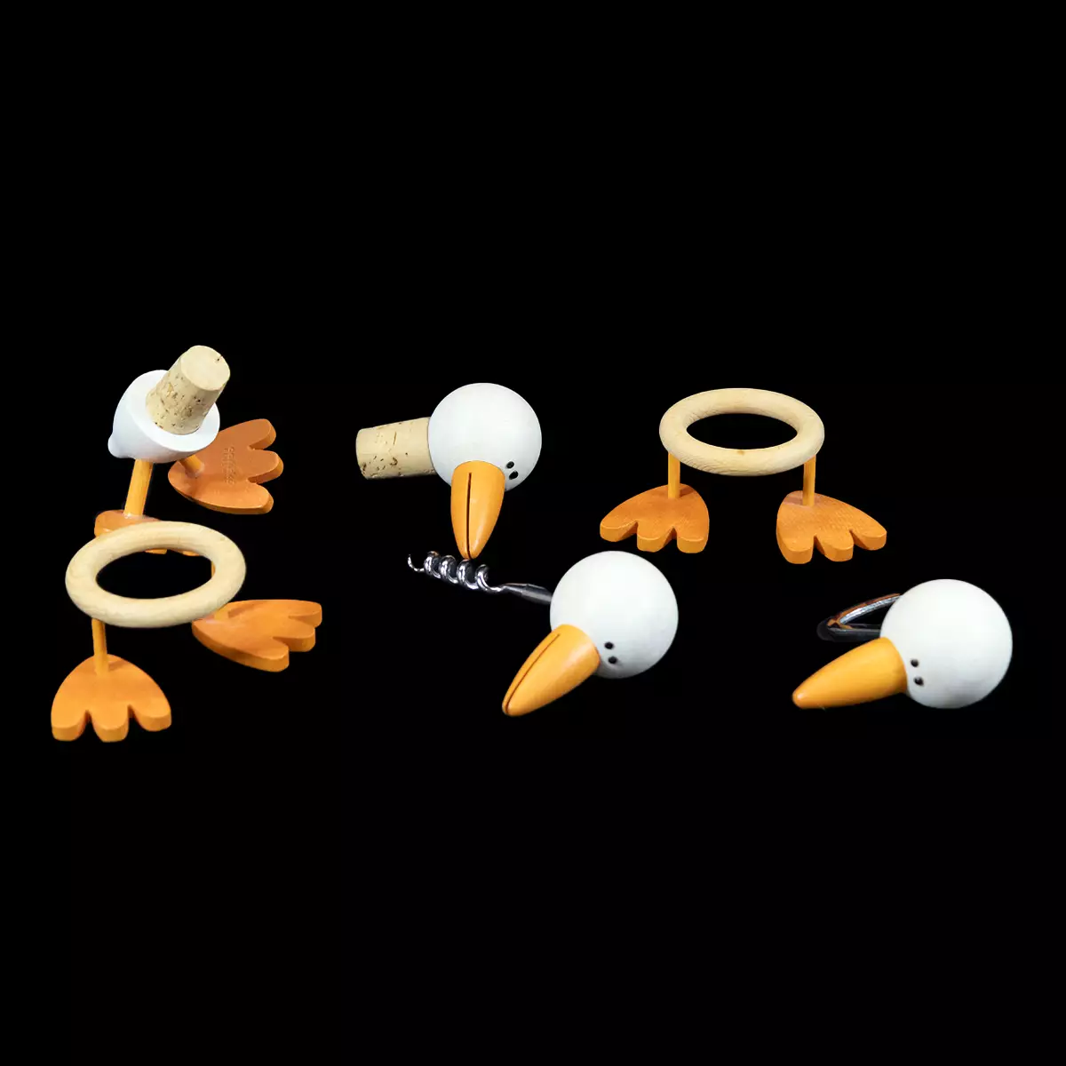 Aarikka Allu-setti sisältää: -2kpl viinipullon korkkeja -1kpl viinipullon korkkiruuvi-avaajan -1kpl pullon avaaja -2kpl munakupit/teline