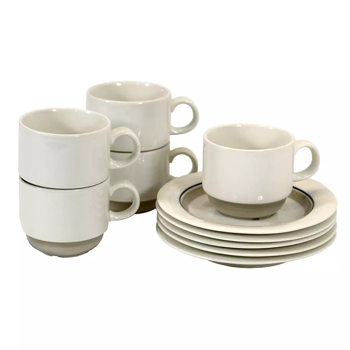 Arabia astiasto Kuppeja 5 kpl Korkeus: 5,5 cm Halkaisija: 6,5 cm Asetteja 5 kpl Halkaisija: 13 cm