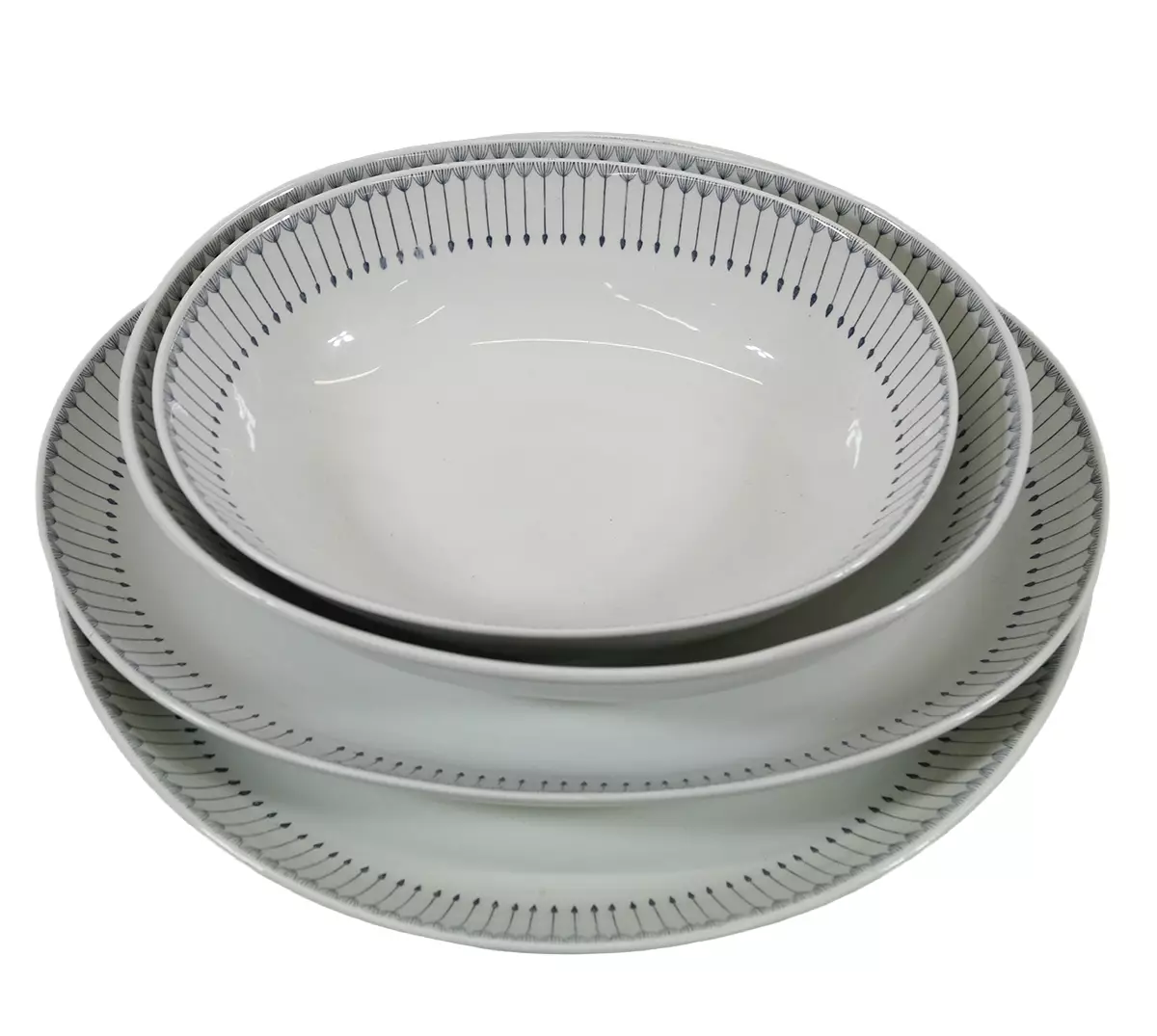 Arabia Heini astiasto Pienempi kulho halkaisija: 19cm, pituus: 24cm Isompi kulho halkaisija: 21cm, pituus: 27cm Pienempi tarjoilulautanen halkaisija: 24cm, pituus: 33cm Isompi tarjoilulautanen... Lue lisää