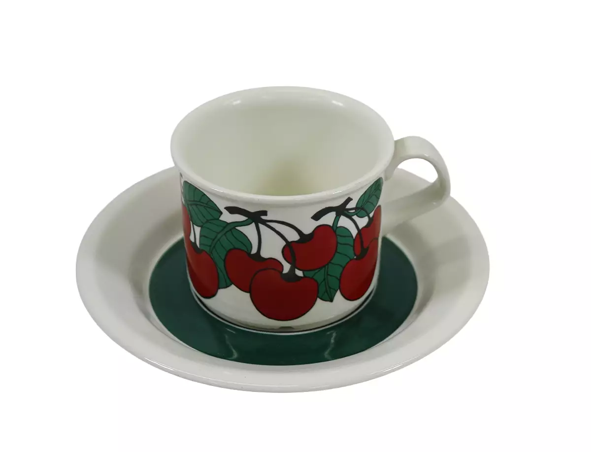 Arabia kirsikka, kahvikuppi ja lautanen