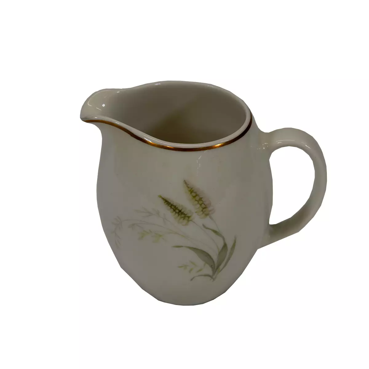 Arabian Tähkä- sarjan maitokannu. Suunnittelija: Raija Uosikkinen. Tuotantoaika: 1958- 1964. Sävyposliinista valmistettu. Vehnäkuviointi ja kultareunus. Korkeus: 8,4cm