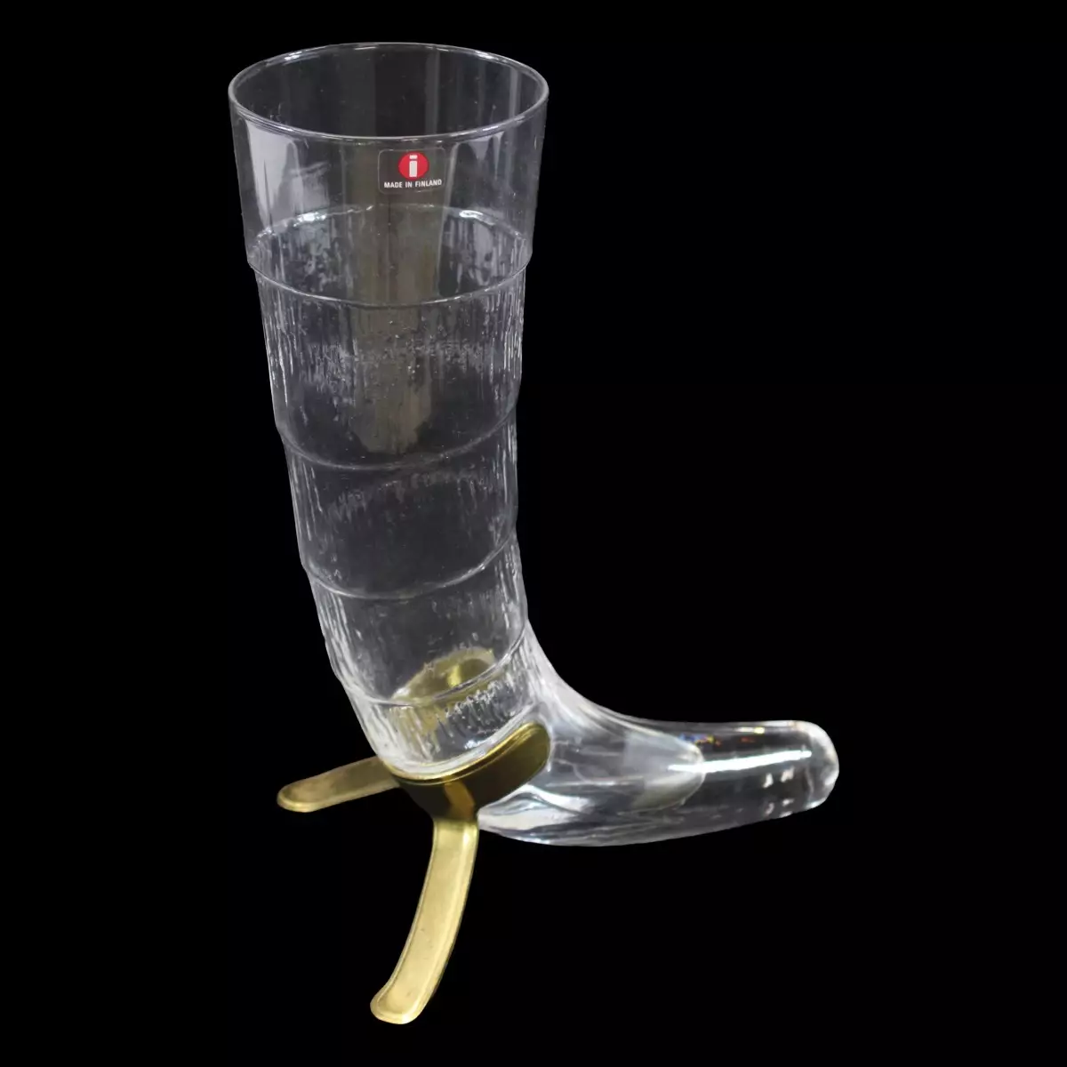 Iittala Harald - juomasarvi - Lasia, messinki jalka Mitat: tilavuus yli 5dl, sarven kokonaispituus yli 30cm, korkeus : n. 23,5cm Valmistaja: Iittala Suunnittelija . Valto Kokko... Lue lisää
