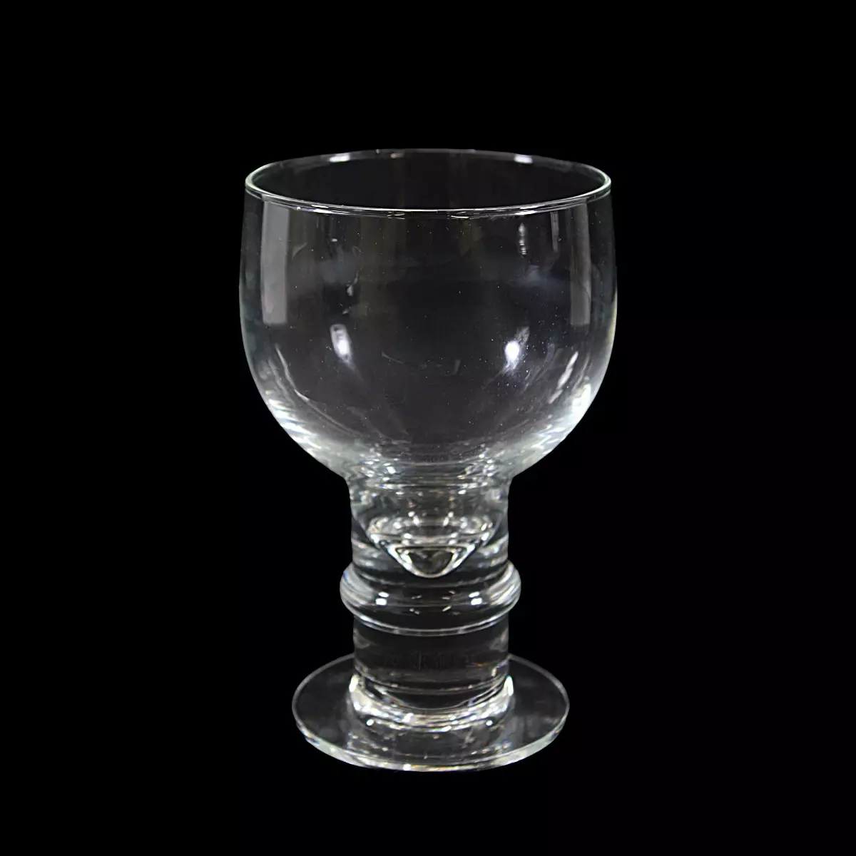 Valmistaja: Iittala/Nuutajärvi, Herttua-sarja Korkeus: 15.5cm, halkaisija: 10cm Kirkas, muottiin puhallettu lasi Suunnittelija: Heikki Orvola Valmistusvuosi: 1969-1991