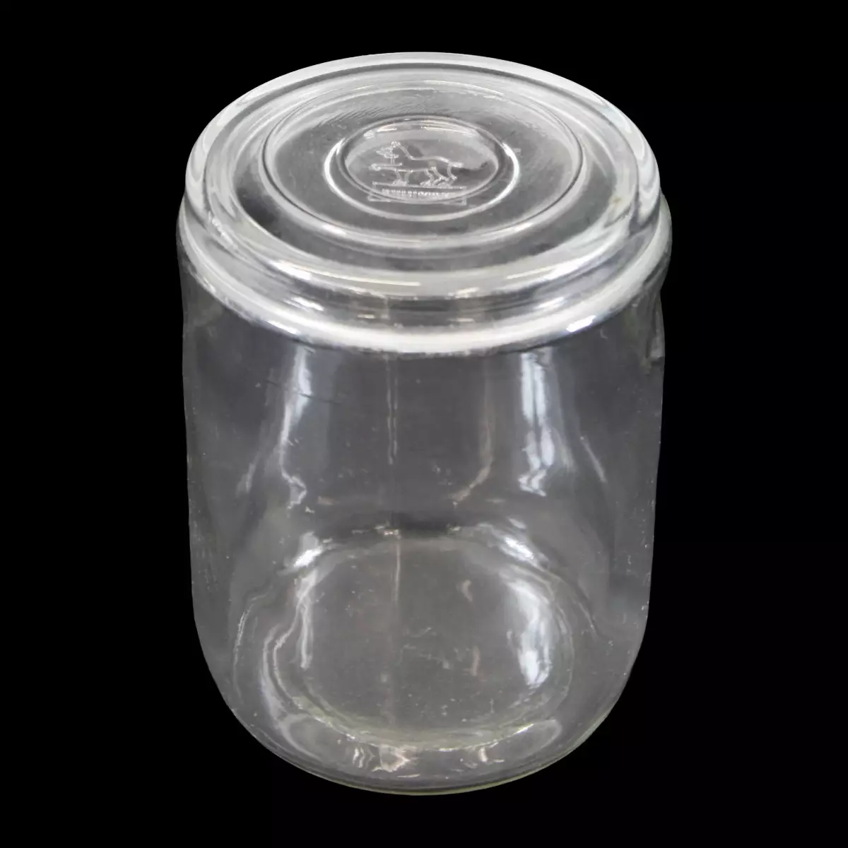 Ilves lasipurkki, Riihimäen lasi (iso) kannella Korkeus 15cm Halkaisija 11cm Materiaali : lasi