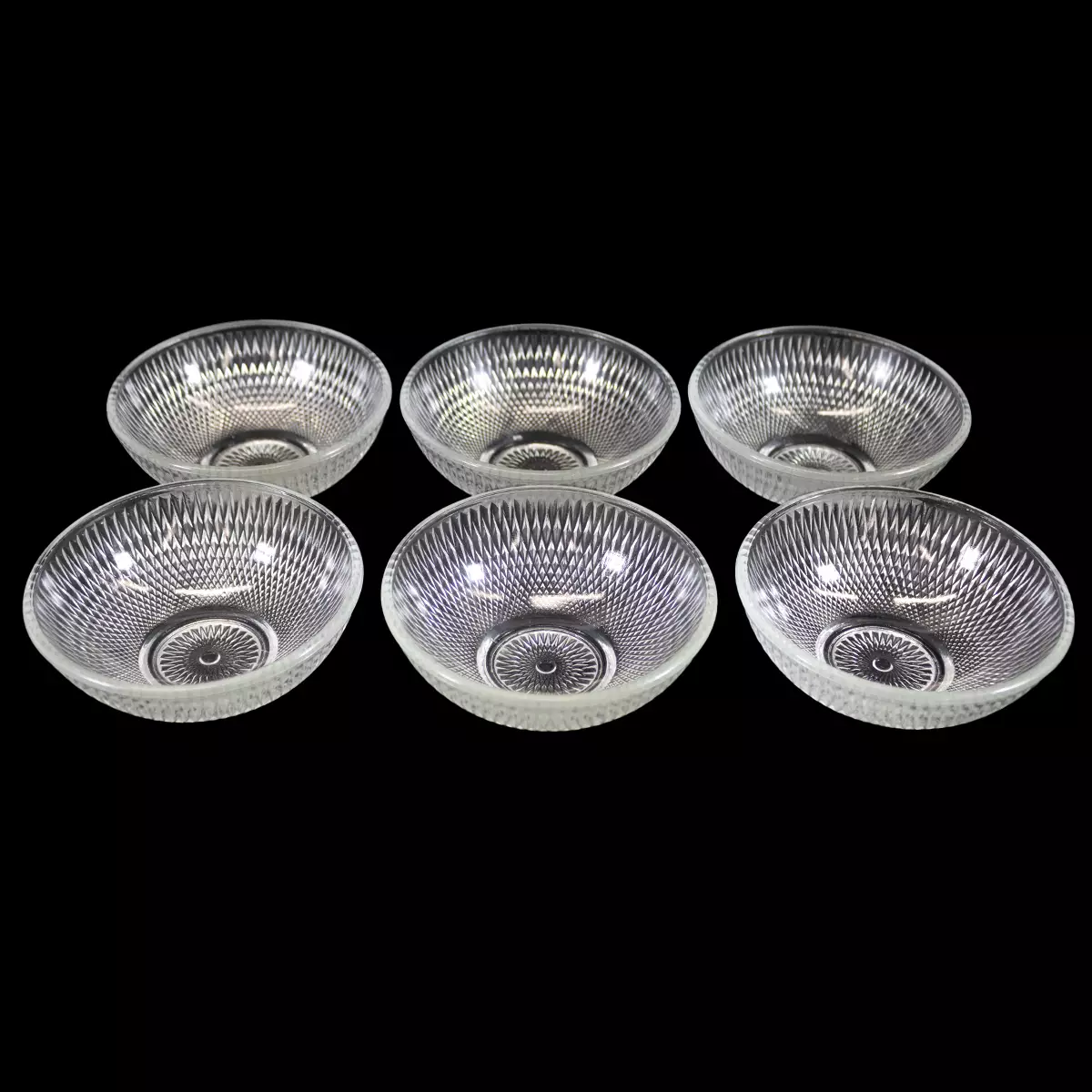 Kirkkaat, lasiset jälkiruokakulhot 6kpl Kunto: Hyvä Halkaisija: 12cm, korkeus: 4.5cm