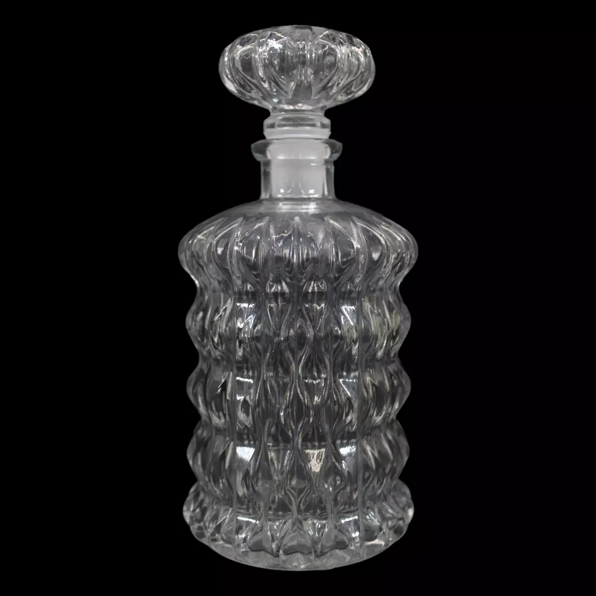 Lasinen karahvi. Valmistaja: ? Korkeus: 23cm Halkaisija: 10cm