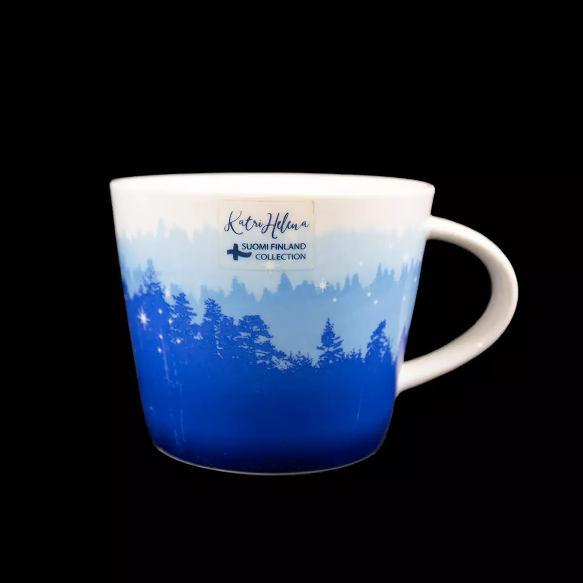 Suomi Finland Collection, Katri Helena- muki. Mukissa kaunis, sinisävyinen metsämaisema Kunto: Hyvä