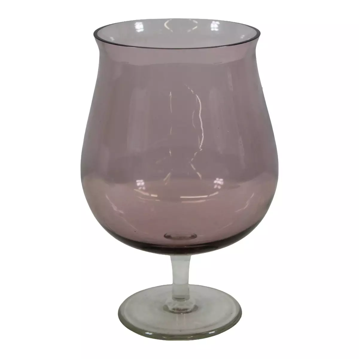 Kumela boolimalja Design: Sirkku Kumela-Lehtonen Väri: Lila, kirkas jalka Korkeus: 22,5cm Leveys: 14,5cm Suuaukon halkaisija: 12cm Kunto: Hyvä, pientä naarmua jalan pohjassa... Lue lisää