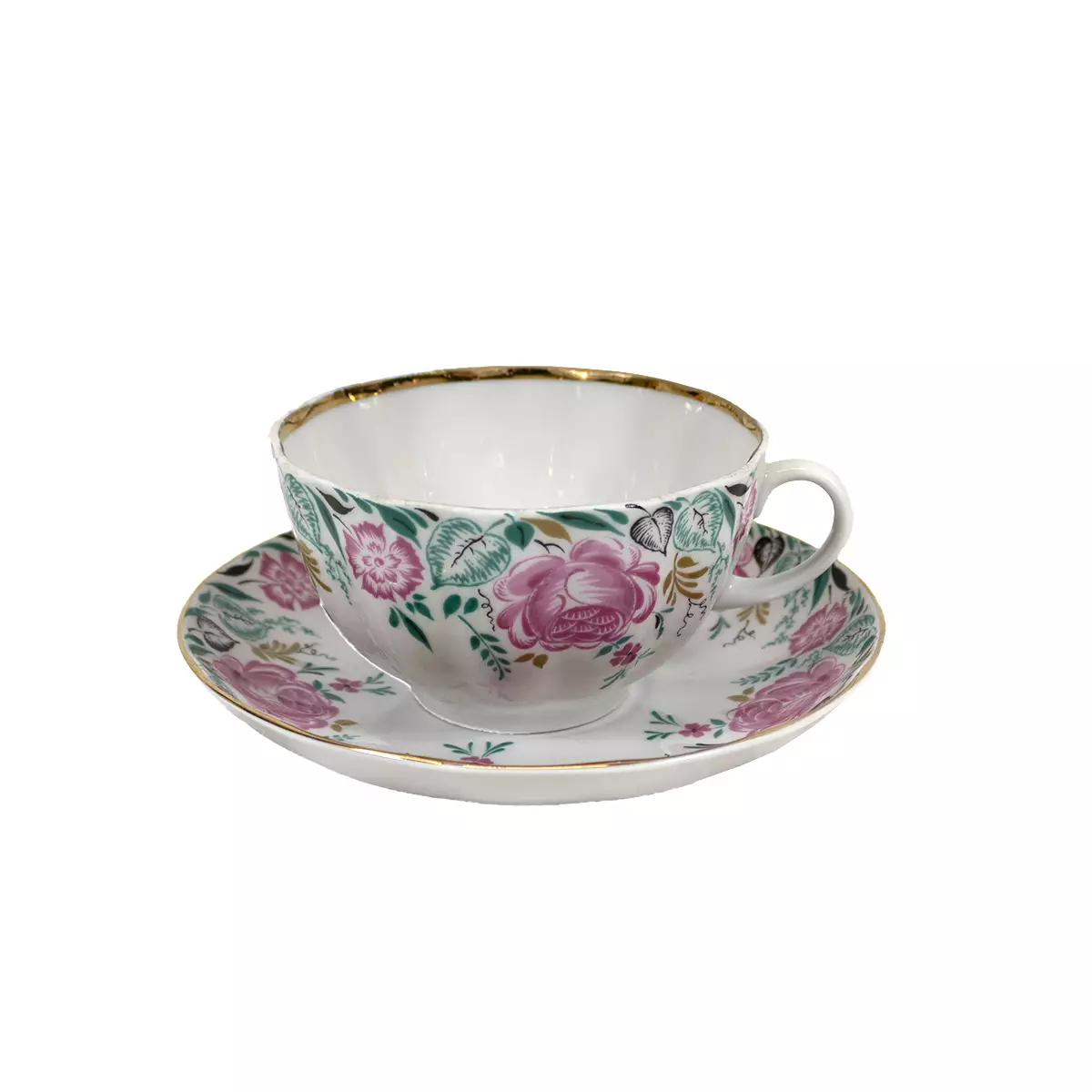 Lomonosov- posliinitehdas Venäjä. Kukkakuvioiset teekupit 6kpl ja lautaset 6kpl