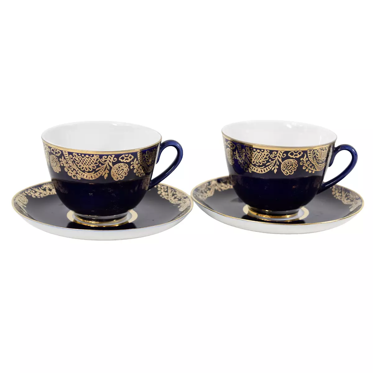 Lomonosov posliini tee setti 2kpl Valmistaja: Lomonosov, Made in USSR Materiaali: valkoinen posliini, jossa koboltinsinen ja kultainen koristelu Koko: kupin korkeus noin 6.8cm, halkaisija 9,3cm... Lue lisää