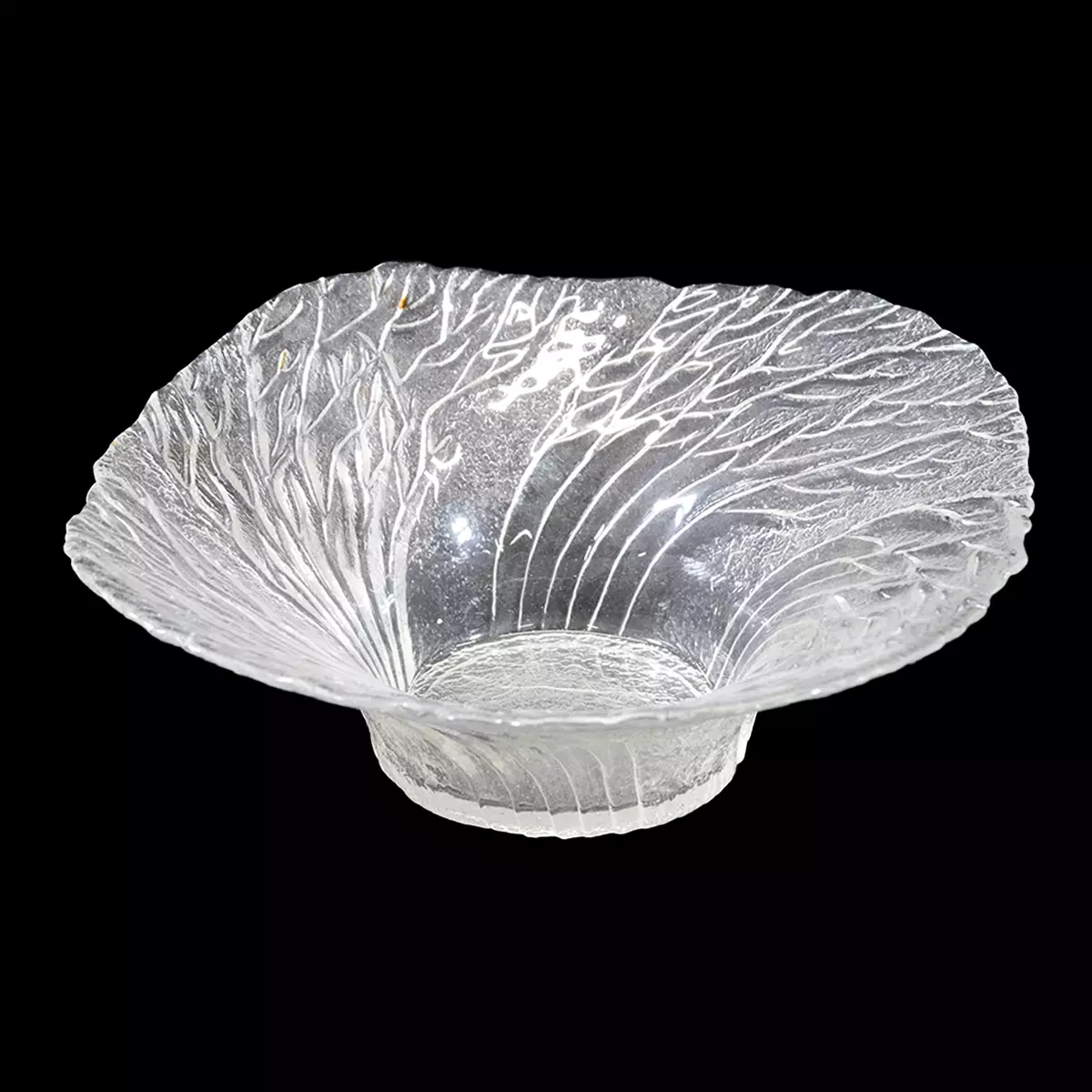 Metsä -lasikulho. Suunnittelija Pertti Kallioinen, Mäntsälän Lasisepät. Korkeus 11cm. Halkaisija 25cm.