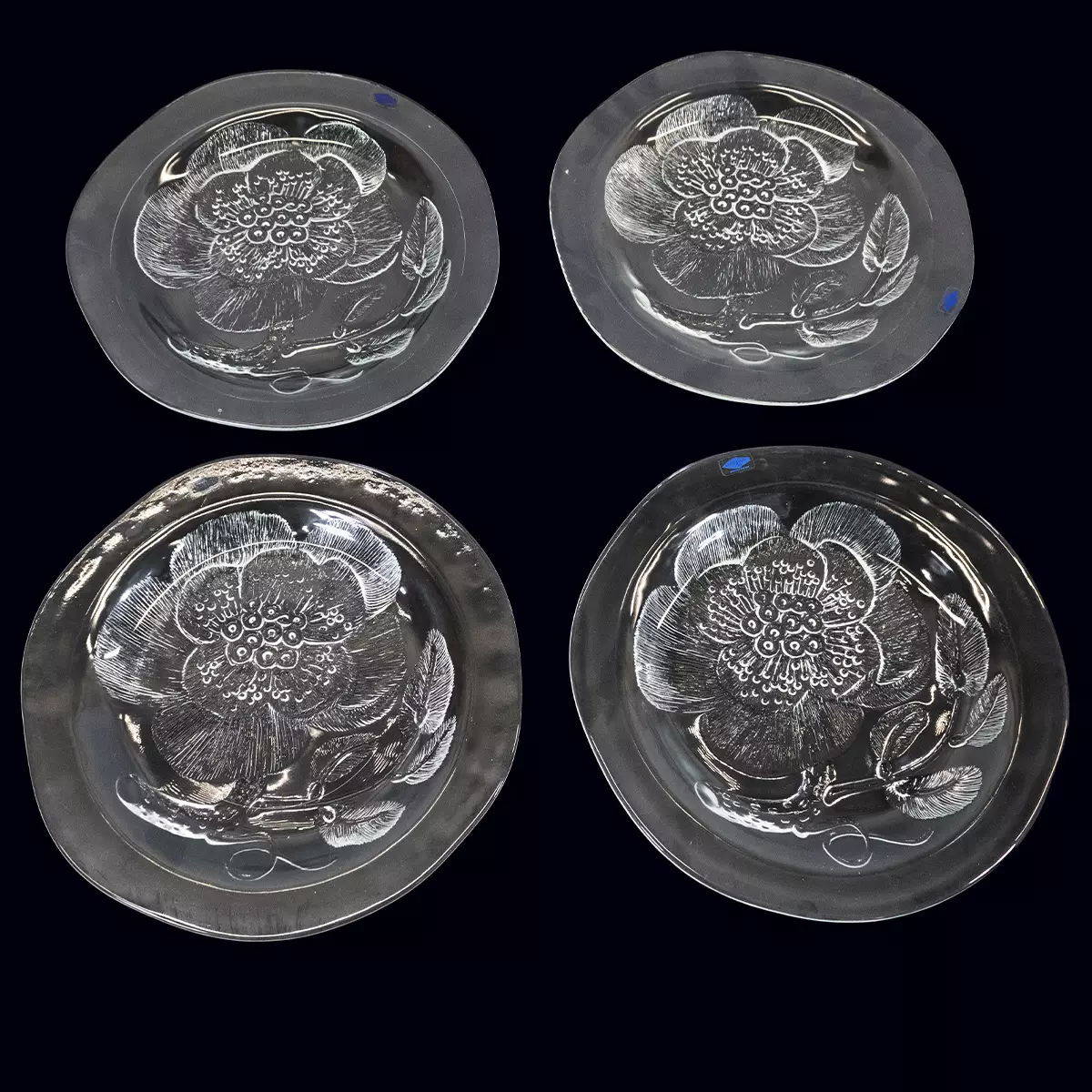 Hyväkuntoiset Pioni- lasilautaset. Suunnittelija Oiva Toikka. Halkaisija: 25cm