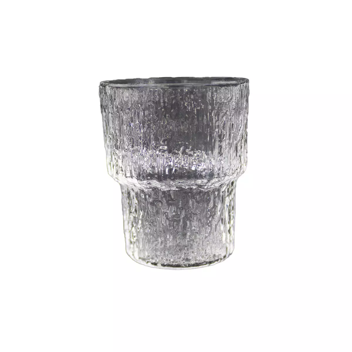 Valmistaja: Iittala. Suunnittelija: Tapio Wirkkala. Mitat: Korkeus: 6cm, Halkaisija: 5cm, Tilavuus 8cl. Väri: Kirkas/Lasi. Materiaali: Lasi