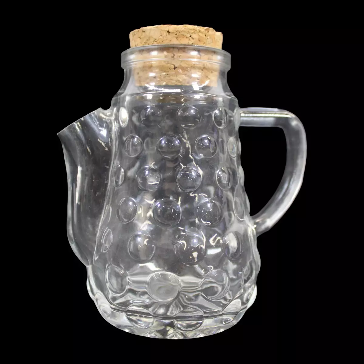 Lasinen pähkinäkannu korkilla: Korkeus: 16cm, Pohjan leveys: 9cm, kahvasta nokkaan 15cm