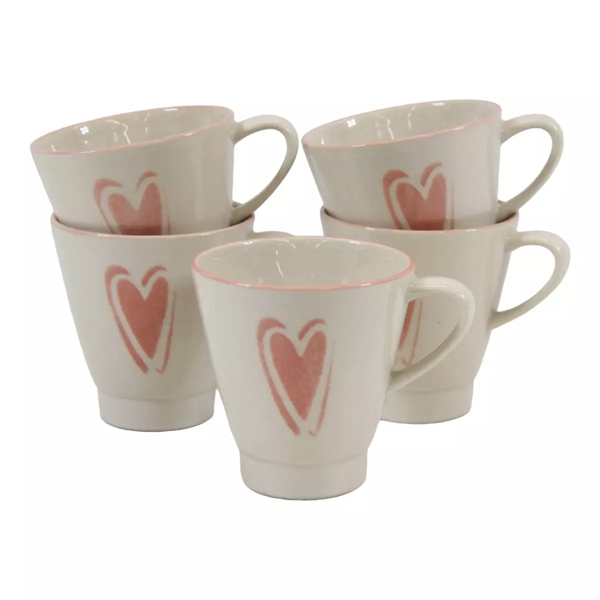 Pentik, sydän kahvikuppi - 5kpl Valmistaja : Pentik Väri : valkoinen, vaaleanpunainen Koko : korkeus : 9cm Halkaisija : n. 8,5cm Keraaminen