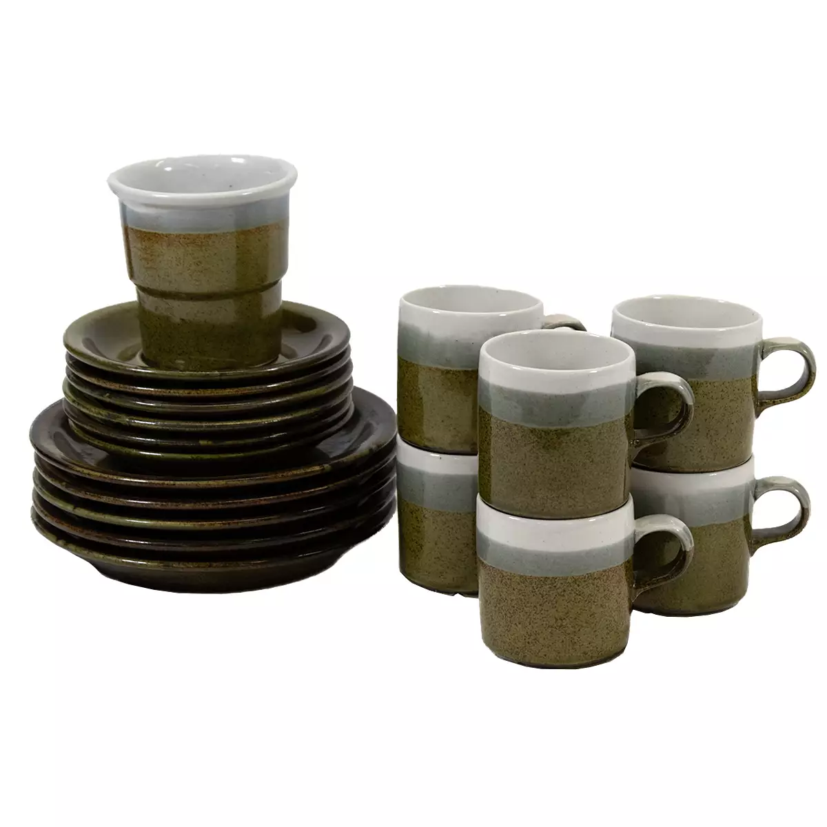 Pentik kahviastiastoa. Suunnittelija Tuuli Saarelainen. Lasitus Posion Keramiikkatehdas 6kpl 0,25l kahvikuppeja 1kpl 0,35l kahvikuppi 6kpl tasseja 5kpl pullalautasia
