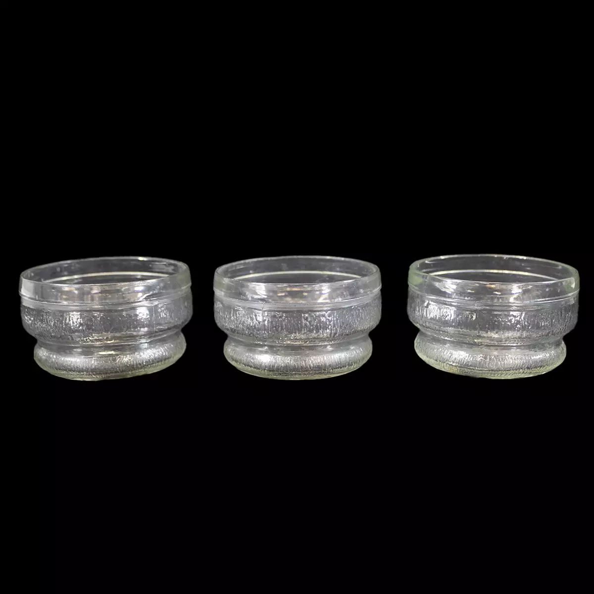 Riihimäen lasi Ilona jälkiruokakulho 3 kpl Korkeus: 6 cm Halkaisija: 10 cm Kulhojen pohjissa hintalapun jämiä.