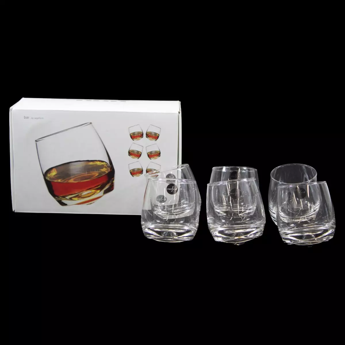 Sagaform Bar-viskilasit - 6 kpl Pohja pyöristetty ja lasi "kiikkuu" kaatumatta. Materiaali: lasi Tilavuus: 20cl Korkeus: 9cm Leveys: 8cm