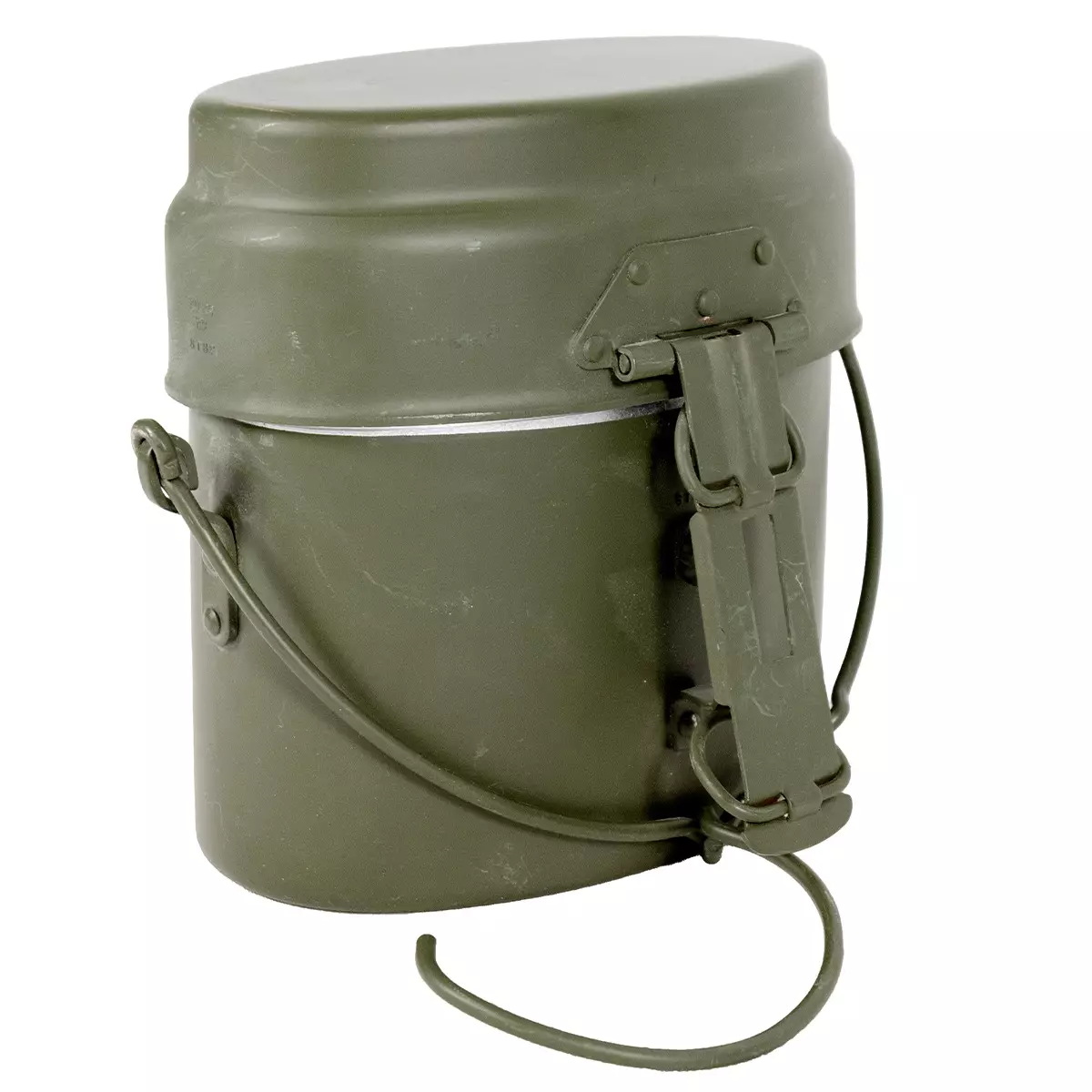 Suunniteltu mm. ruoanlaittoon ja veden keittämiseen kenttäolosuhteissa, usein spriipolttimen kanssa. Suosittu esine bushcraft -harrastajien ja keräilijöiden keskuudessa. Armeijan vihreä väri, kunto hyvä vähän käytönjälkiä.