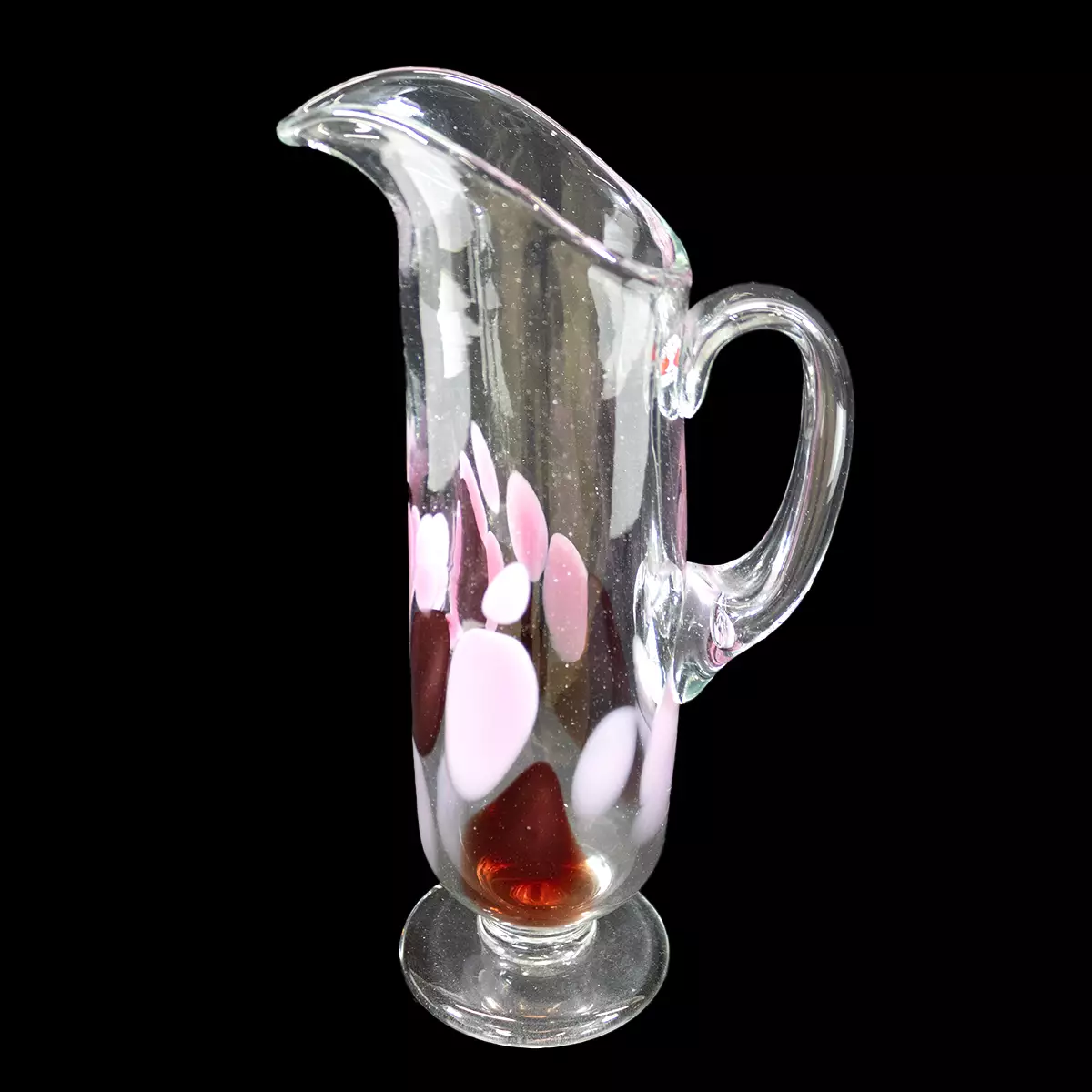 Studiolasin lasinen kannu värikkäillä yksityiskohdilla
