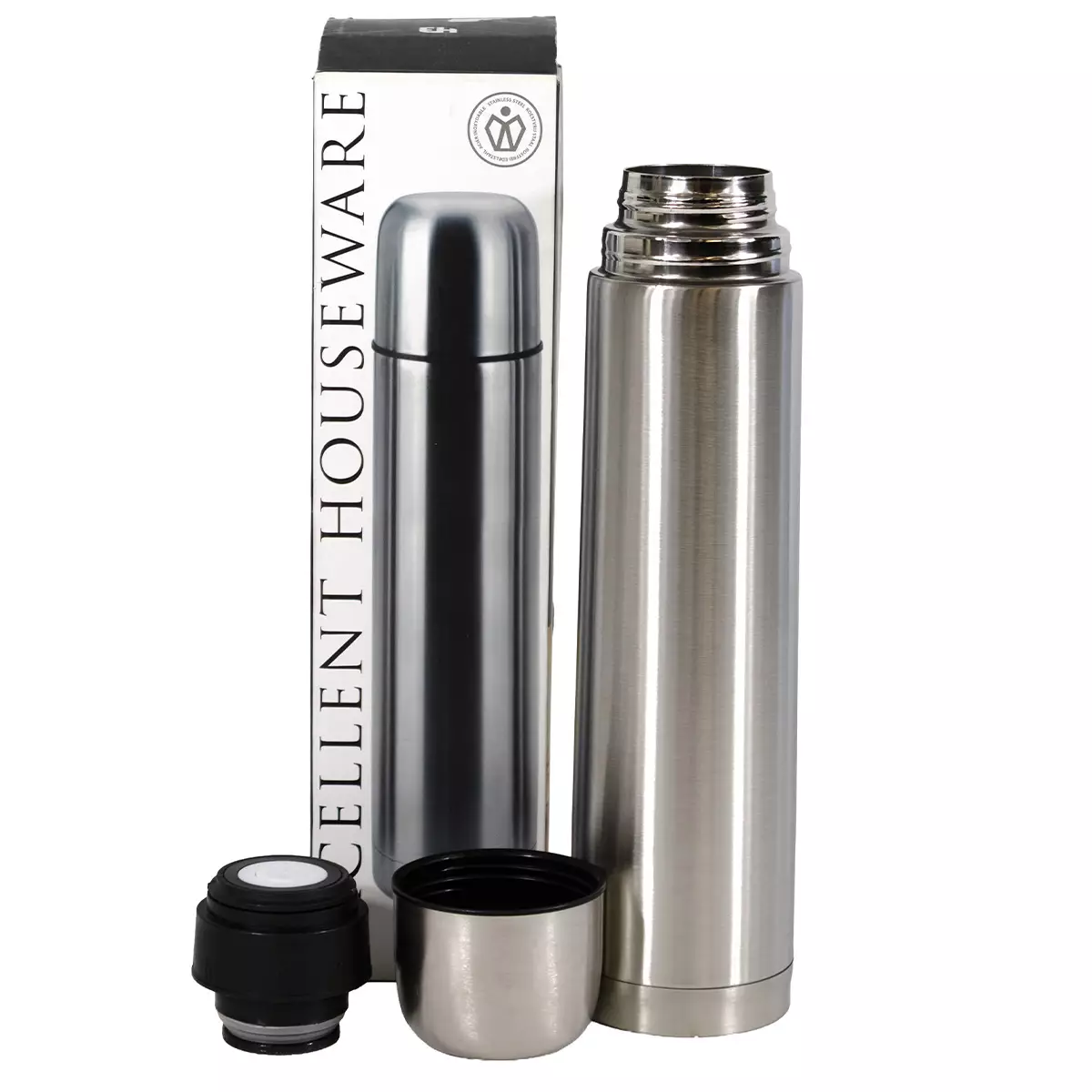 Excellent houseware termospullo. Ilmatiivis. Tilavuus: 1 litra. Väri: Teräksinen. Materiaali: Ruostumaton teräs.