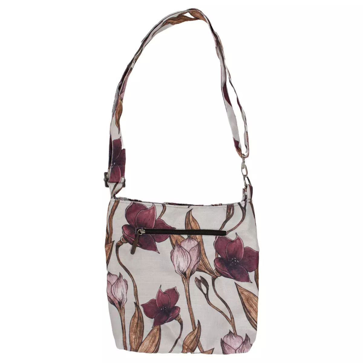 Elävä Tuote, laukku, harmaa-violetti-ruskea, kukkakuvio