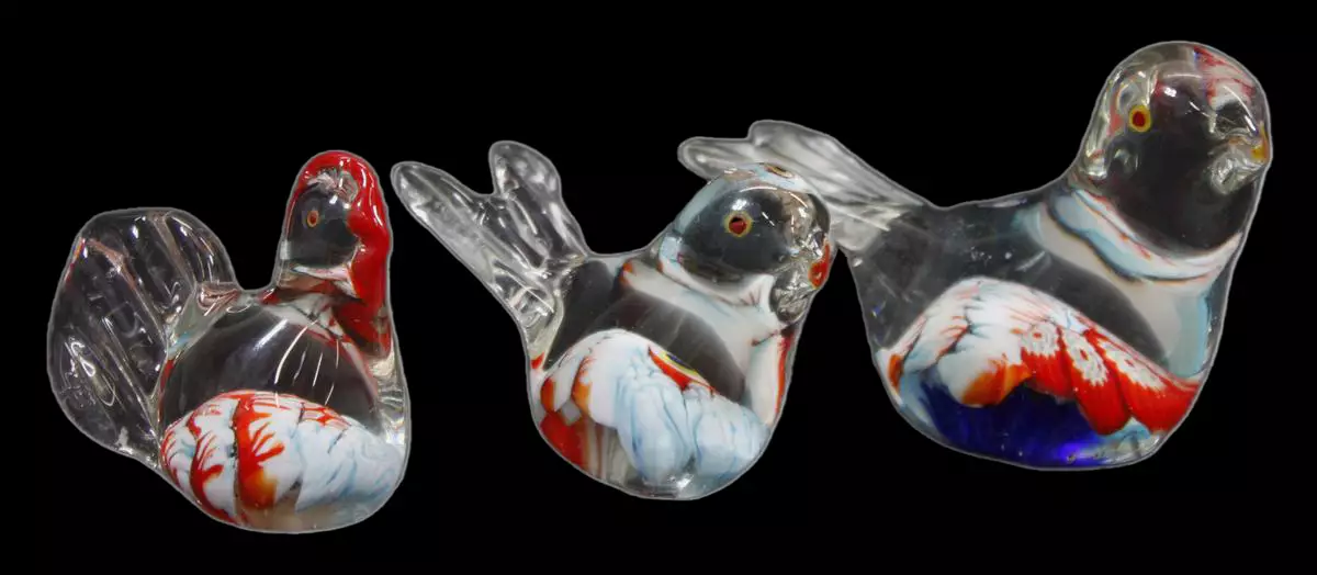 3Kpl lasilintuja Valko, sini, puna. turkoosipohja Korkeudet 5cm 5cm ja 4cm