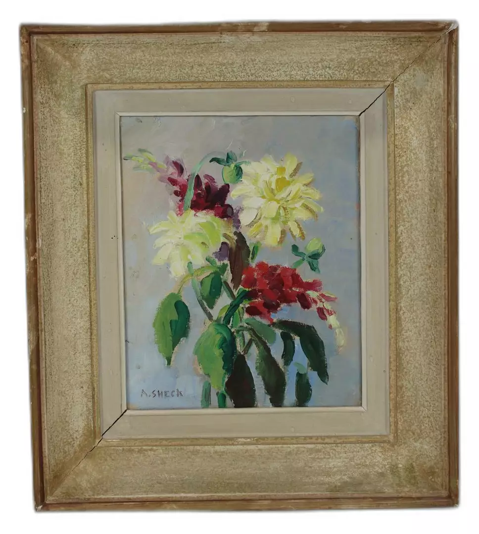 A.Sneckin maalaama öljyvärimaalaus kukka aiheella.