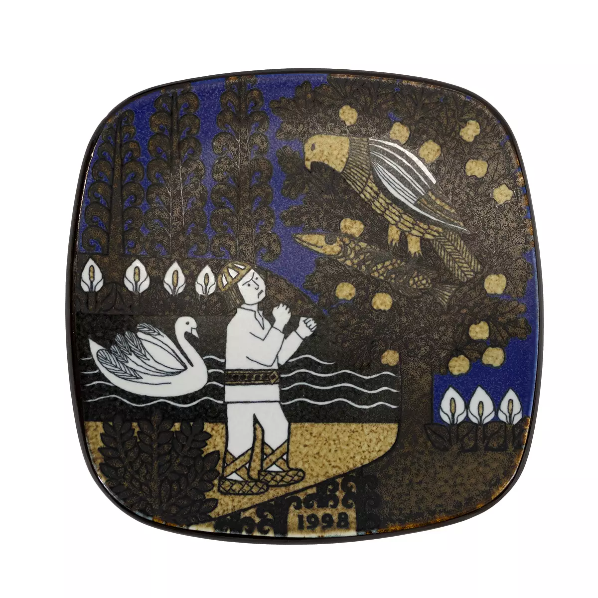 Arabia Kalevala-vuosilautanen 1998 Suunnittelija: Riitta Uosikkinen, pohjassa signeeraus ja leima Mitat: 20 x 20cm Kuva-aiheet perustuvat kansalliseepokseen Kalevalaan