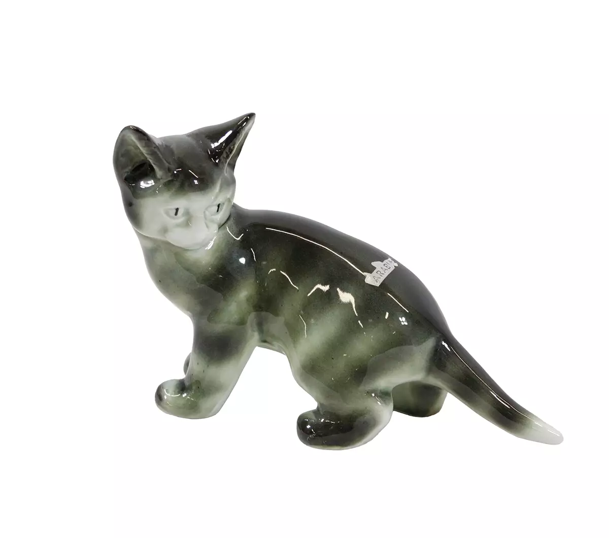 Arabia kissa figuuri-1960 luvulta Suunnitelija: Lea Von Mickwitz Korkeus: 14cm Leveys: 7cm Pituus: 18cm