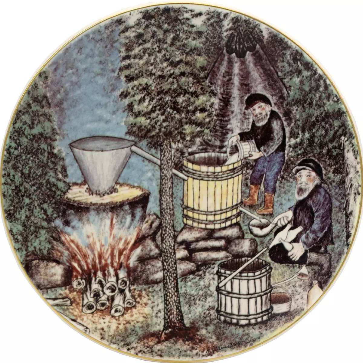 Hyväkuntoinen vuosilautanen. Suunnittelija Andreas Alariesto. Lautasen halkaisija 30cm.
