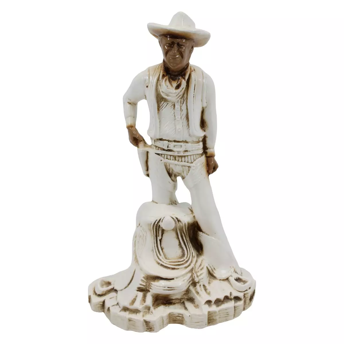 Kipsinen cowboy-patsas Pohjassa muistokirjoitus Mahdollisesti esittää näyttelijä John Waynea Korkeus: 43cm