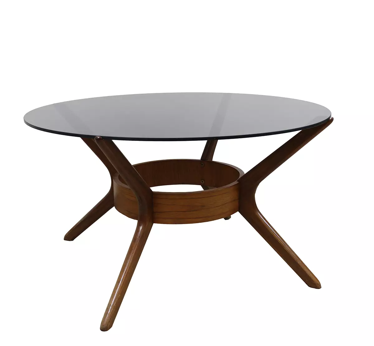 Ei-Mi kalusteen valmistama ja Eino Tuukkasen suunnittelema Jasmin sohvapöytä lasikannella. Lasissa muutamia pinta naarmuja, mutta yleisilmeeltään siisti.