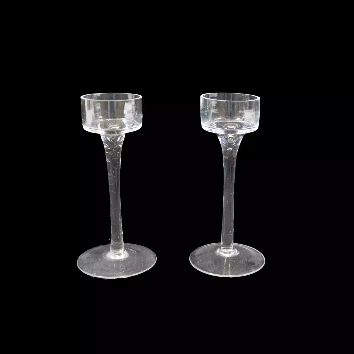 Korkeat Finnmarin kynttilänjalat tuikkukynttilöille. 2 kappaletta. Kirkasta lasia Kunto: Hyvä