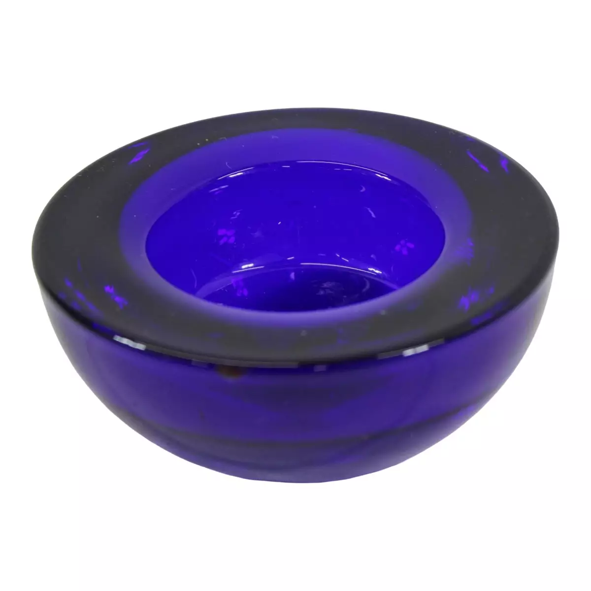 Valmistaja: Iittala Väri: sininen Materiaali: lasi Korkeus: 5cm Halkaisija: 9cm Kunto: Hyvä