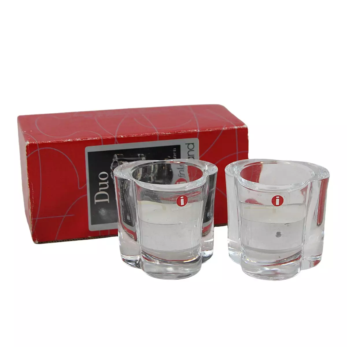 Korkeus: 6cm Halkaisija n. 6cm Kunto: Hyvä, mukana tuikut (uudet) alkuperäisessä pakkauksessa Desing: Kerttu Nurminen