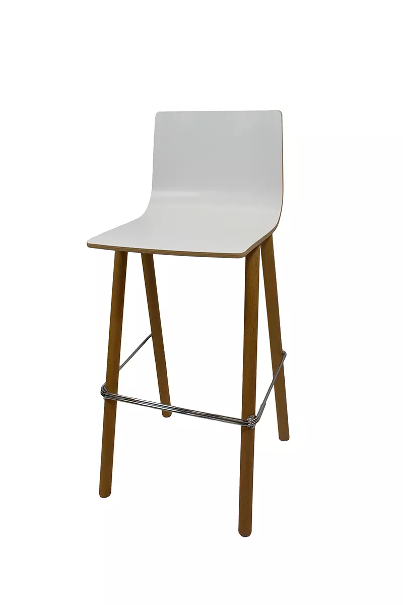 Iskun korkea puutuoli. Istuin osa pinnoitettu muovilla, joka helppo pitää puhtaana.