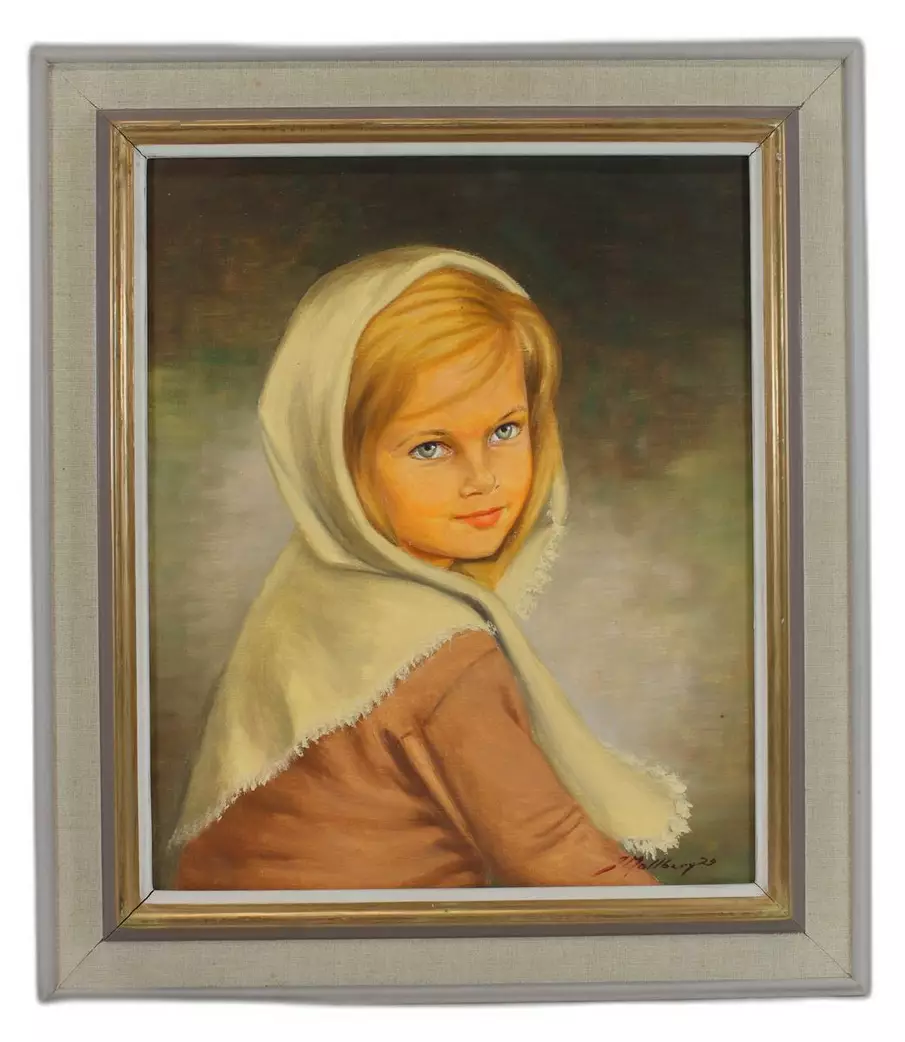 Jorma Mollbergin maalaus Huivipäinen tyttö. Koko: 52cm x 60cm