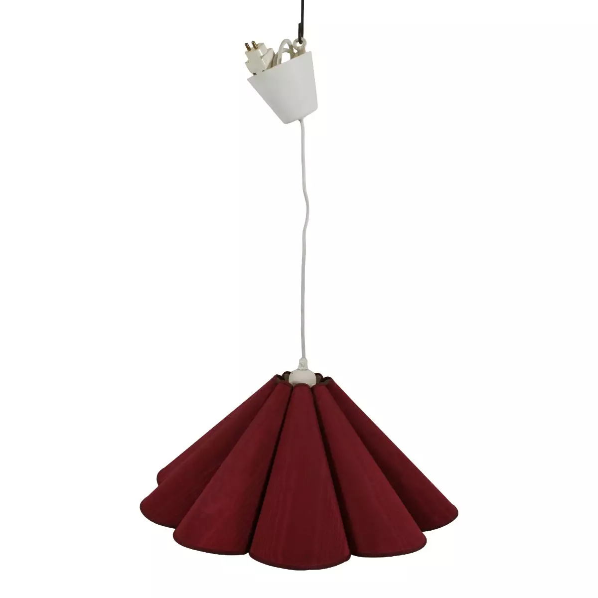 Kattovalaisin E27 lampun kanta. Punainen varjostin, kangasta. Pituus: 65 cm Testattu, toimii.