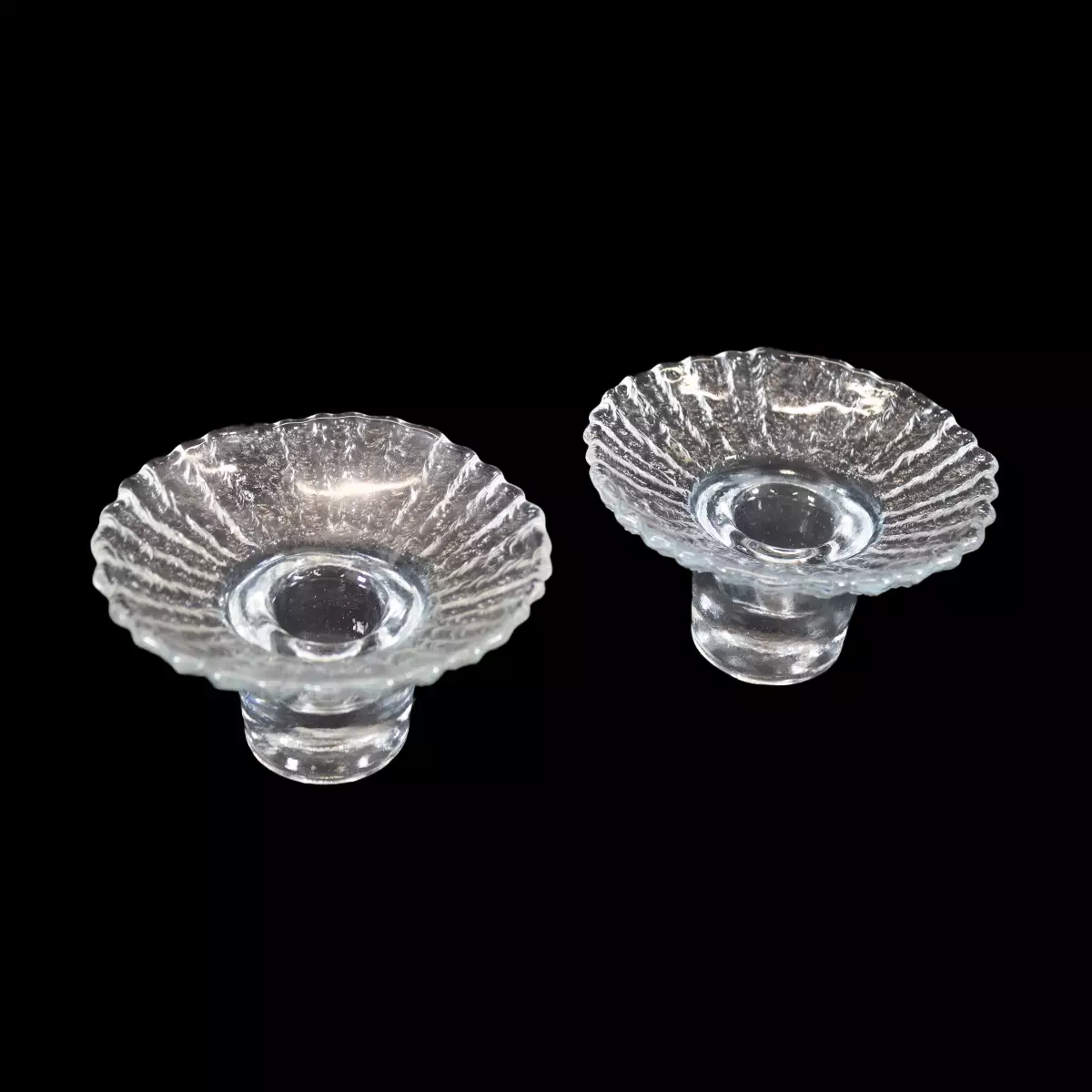 Kehrä kynttilänjalat 2 kpl Suunnittelija: Nanny Still Valmistaja: Riihimäen lasi Valmistettu: 1975-1980 Halkaisija: 10 cm