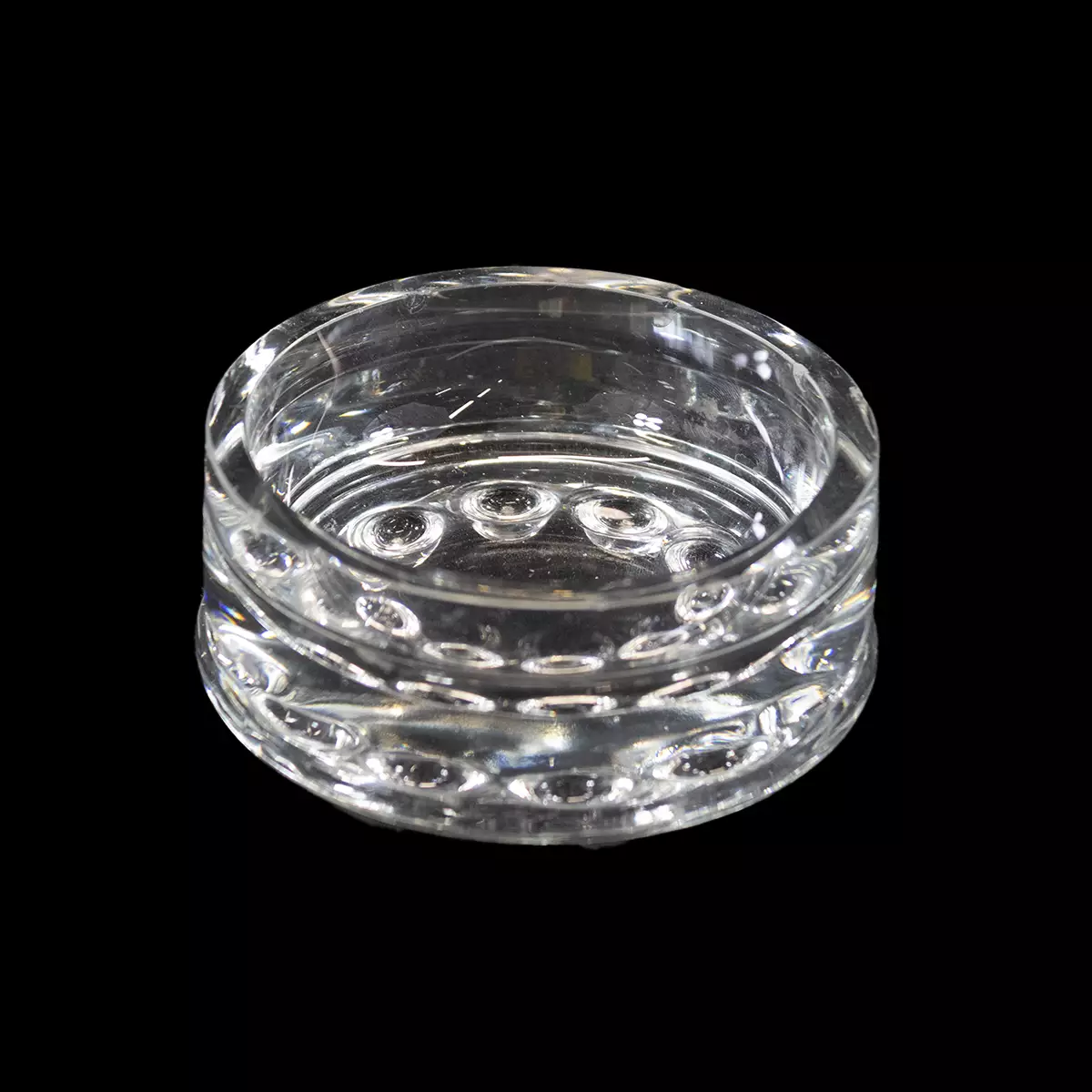 Timo Sarpaneva, Iittala-helminauha kirkaslasi, pohjassa helmikuviointi - ei tarraa, yläreunassa muutama "kirppu" korkeus n. 3,5 cm halkaisija n. 8 cm pienempi koko