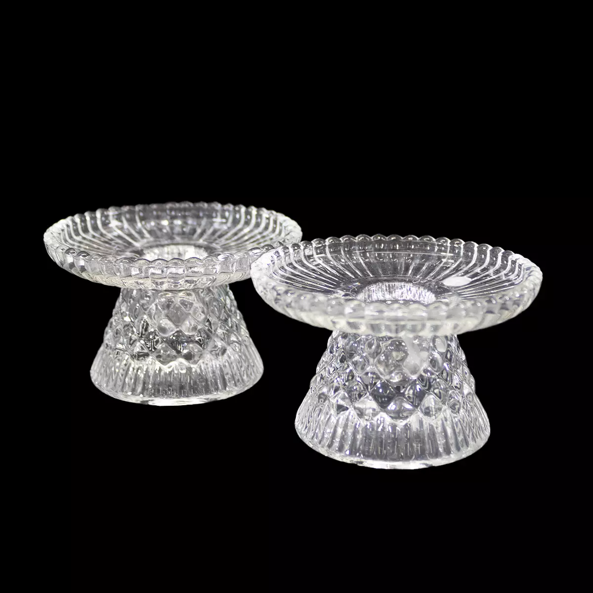 Lasiset, kirkkaat kynttilänjalat kruunukynttilöille Halkaisija: 9cm Korkeus: 5,5cm Kunto: Hyvä