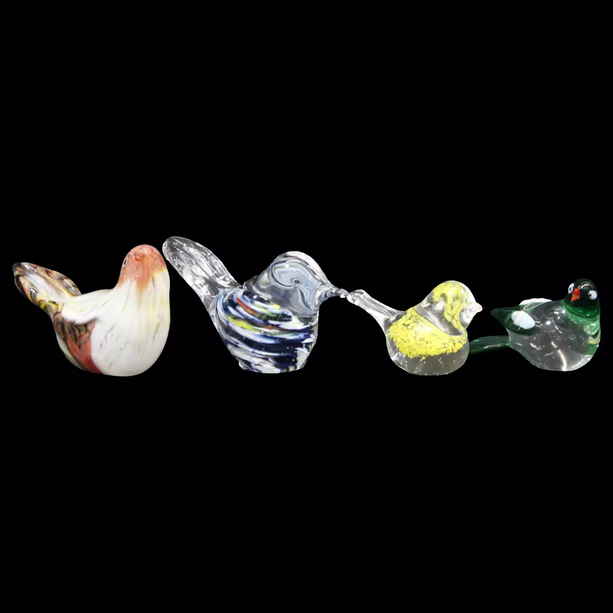 4kpl lasilintuja Sini-moniväri, valko-ruskea, keltainen, vihreä Korkeudet 3cm 3cm 4cm 4cm