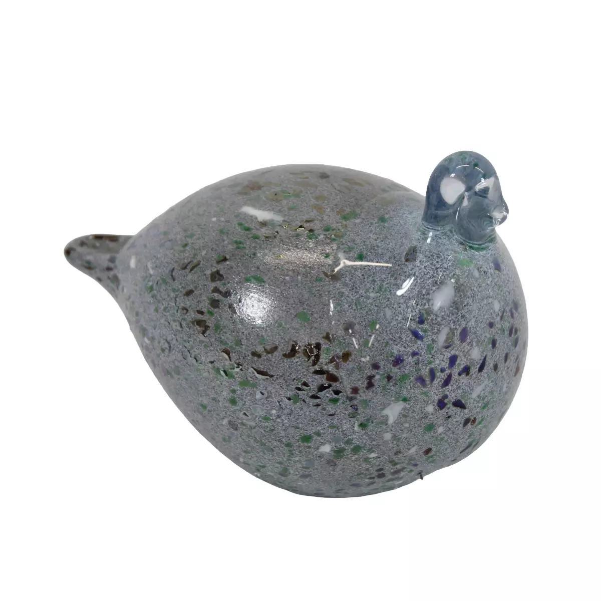 Lasilintu (harmaa, erivärisiä pilkkuja) Korkeus: n.15 cm Pituus: n. 20 cm