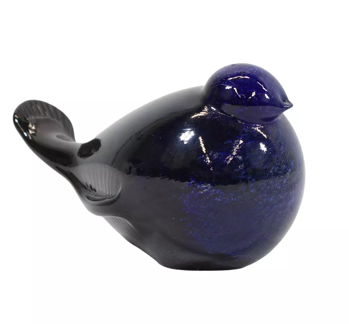 Tummansininen lasilintu, koriste-esine. Valmistaja: Art Glass