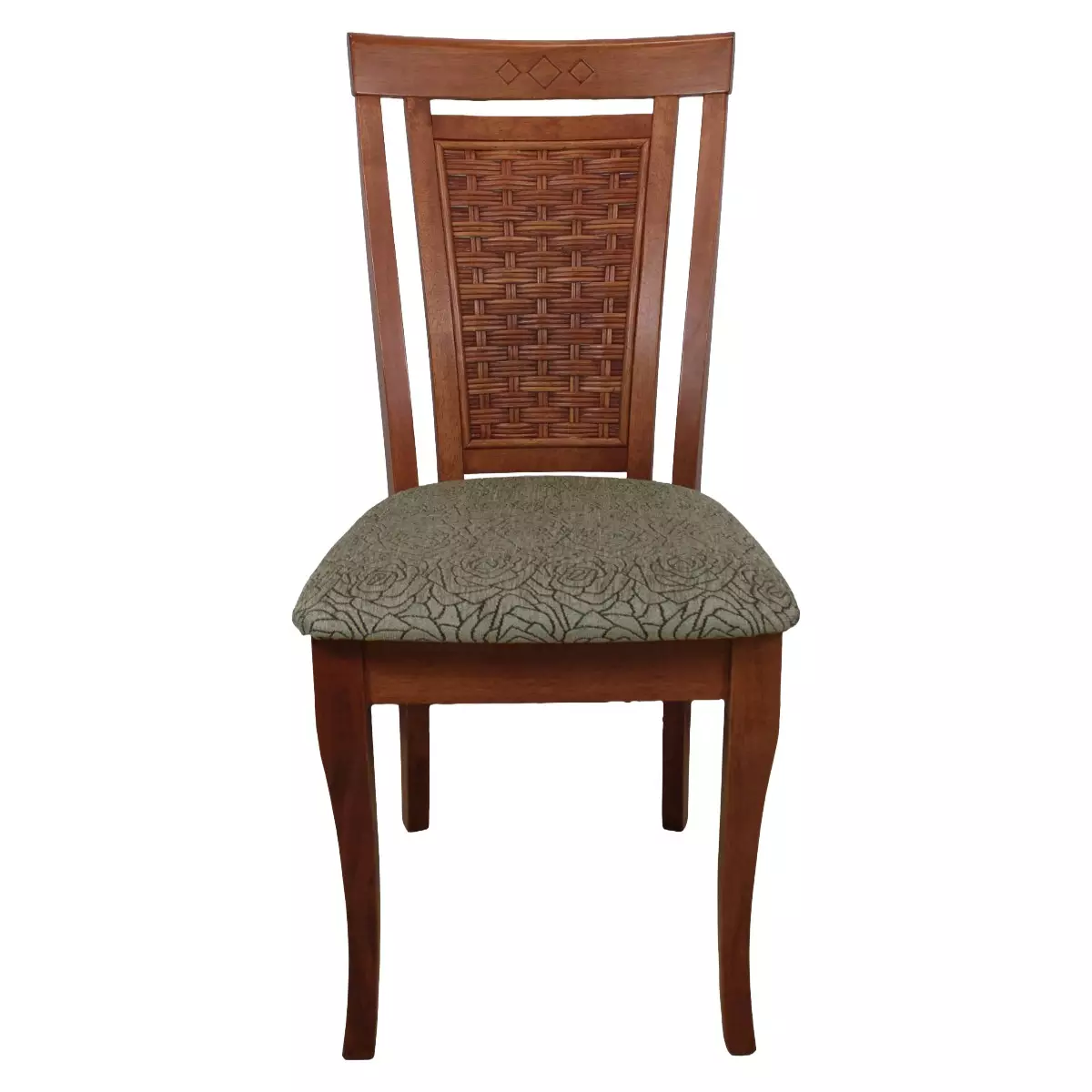 Elävä säätiöllä uudelleen verhoiltu tuoli. Kangas Laurizon Velasco. Tuolit puuta, jossa selkänojassa rottinki koriste.