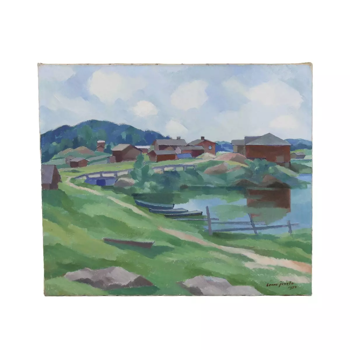 Lennu Juvela ''Pirkkalan kylä'' maalaus vuodelta 1950