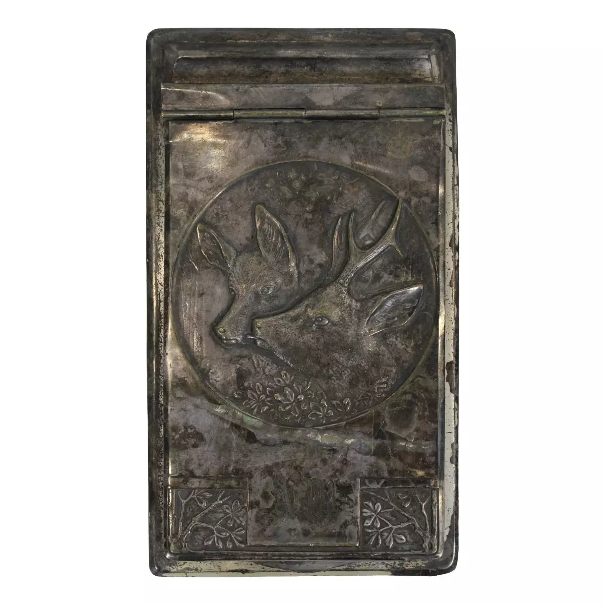 Vihkoteline pöydälle. Alpakkaa, patinoitunut