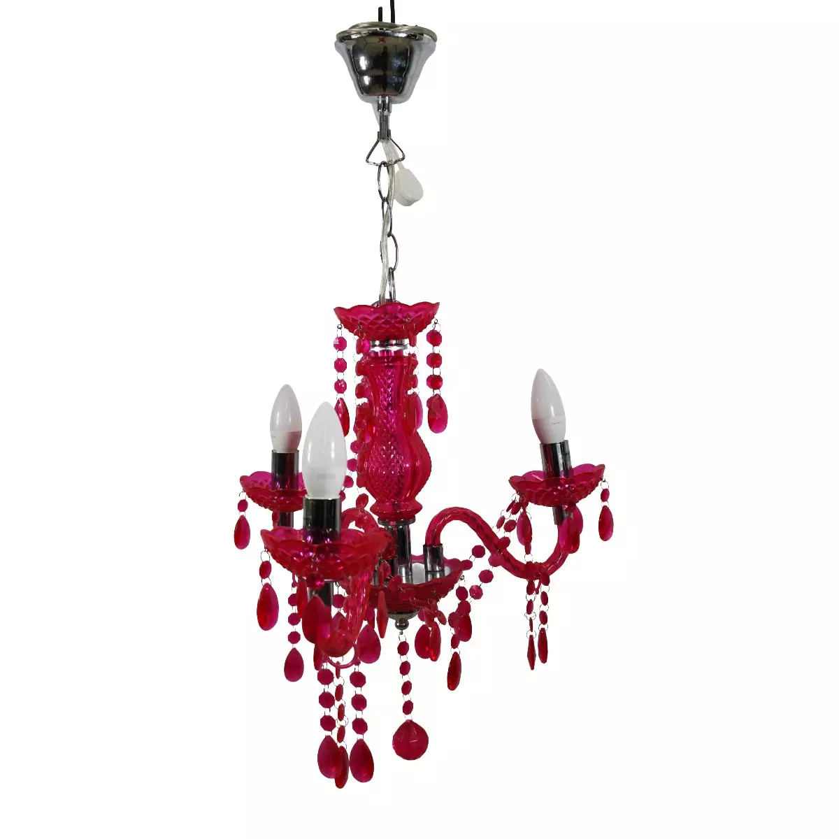 Pinkki kattokruunu E14 lampun kanta. Muovinen runko. Pituus: n. 51 cm Testattu, toimii