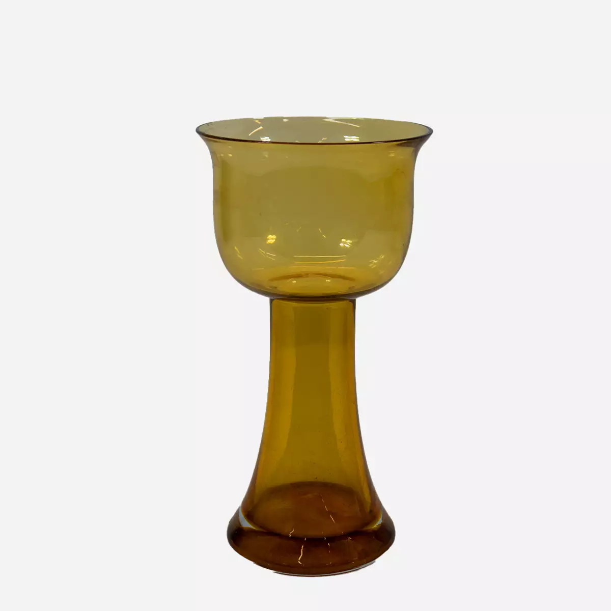 Nanny Stillin Riihimäen Lasille suunnittelema Lotus maljakko Väri: Meripihka-amber Tuotannossa v.1975-76, tarra paikallaan Korkeus: 25cm, halkaisija yläpuoli: 13cm, alapuoli: 10.5cm... Lue lisää
